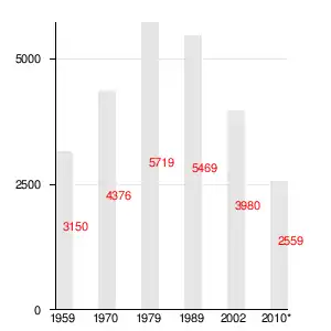 | Миккели | 425 | 724 | 842 | 1780 | 2645 | 3402 | 3451 | 3837 | 3950 | 3970 | 4124 | 4186 | 4159 | 4156 |