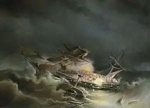 ![]() К. В. Круговихин «Крушение корабля „Ингерманланд“ 30 августа 1842 года у берегов Норвегии», 1843 год. |