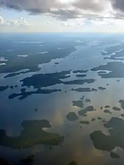 Вид с воздуха на озеро Миннитаки, которое в среднем течении пересекает Инглиш-Ривер | |