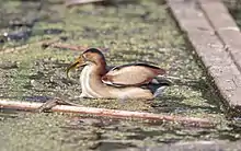 Самка откладывает 2—7 яиц. В северных регионах размер кладки обычно составляет 4—5 яиц, а в южных регионах кладки меньше, чаще в них встречается 2—3 яйца. В Онтарио из 196 гнёзд 9 содержали одно яйцо, 23 — 2 яйца, 33 — 3 яйца, 65 — 4 яйца, 54 — 5 яиц, 11 — 6 яиц, 1 — 9 яиц. В Южной Каролине за 6 лет наблюдений 50 % кладок содержали 4 яйца, 28 % — 3 яйца, 17 % — 5 яиц, 5 % — 2 яйца. В Айове средний размер кладки по наблюдениям Уэллера составил 4,48 яйца (на основе 115 кладок), на западе штата Нью-Йорк в 1999—2000 годы — 5,25 яйца[26]. Уэллер также отмечал, что кладки с шестью яйцами чаще встречаются в северных регионах[25]. Яйца гладкие, бледно-голубые или бледно-зелёные, без блеска, эллиптической формы, размером 31,1 × 23,9 мм. Информация о толщине скорлупы отсутствует. По-видимому, родители способны распознавать яйца своего вида и отвергают яйца других птиц, вместе с тем, в Айове 2 из 13 гнёзд содержали яйца американской лысухи (Fulica americana)[23].