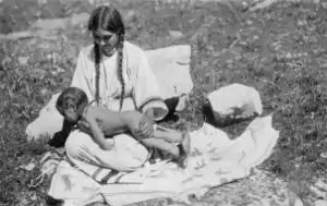 Женщина одного из племён Великих равнин с ребёнком, фото 1917 г., National Geographic