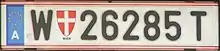 - Автомобили в Вене имеют 5 цифр + 1 букву (напр. W 12345 A) или 4 цифры + 2 буквы (напр. W 1234 AB)