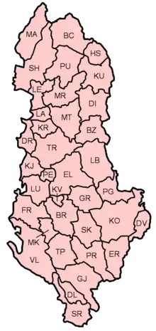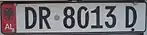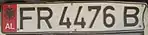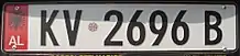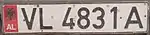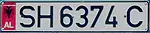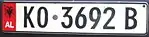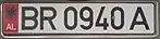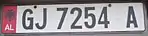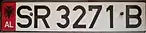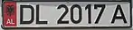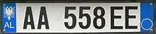 Регистрационный номерной знак Албании выполняется чёрными буквами на белом фоне. Повторяет вид итальянских номеров образца 1994 года.