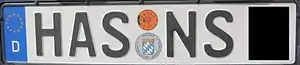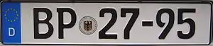 ![]() | Номерные знаки экспортируемых автомобилей. Устанавливаются на автомобили, вывозимые за границу Германии. Владелец ТС не должен быть гражданином Германии и не должен регистрировать автомобиль. На таких номерах отсутствует синяя полоса с символом ЕС в левой части номерного знака. Вместо неё в правой части знака наносится красная полоса и указывается число, месяц и год окончания страхового договора ТС. |