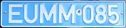 - Номерные знаки Миссии наблюдателей ЕС. Выполняются белыми символами на голубом фоне, формат — буквосочетание EUMM и три цифры.