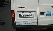 - Номерные знаки нерезидентов. Выполняются чёрными символами на жёлтом фоне, формат — буквосочетание FG и пять цифр. Примерно с середины 2000-х годов данные номера не выдаются.