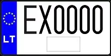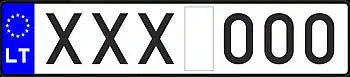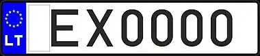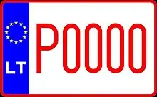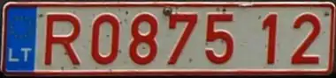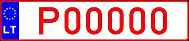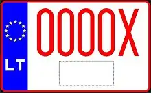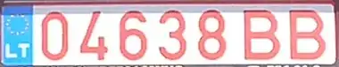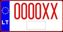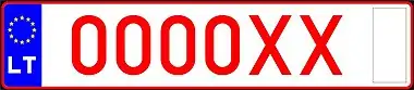 Транспортным средствам, временно зарегистрированным на территории Литвы, присваиваются номерные знаки с красными символами на белом фоне. До 2004 года две буквы предшествовали пяти цифрам, после 2004 года слева появилась синяя полоса с флагом ЕС, а буквы стали ставить после цифр.