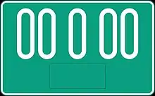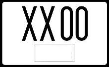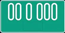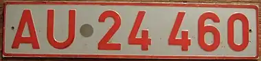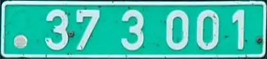 Номера выполнялись красными символами на белом фоне в формате «буква и пять цифр», слева присутствовала синяя полоса с государственной символикой. С конца 1990-х годов данные номера не выдаются, но их всё ещё можно встретить на улицах, хотя и очень редко.