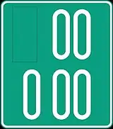 До 2004 года знаки имели только квадратное двухрядное исполнение, в верхнем ряду располагались три цифры, в нижнем — две буквы, стикеры наклеивались слева от цифр и от букв.