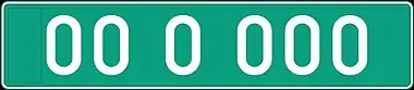Дипломатические номера имеют зелёный фон и белые цифры. Знаки сгруппированы следующим образом: ЦЦ Ц ЦЦЦ, где Ц — цифра. На номерах отсутствует синяя полоса слева. Первые два числа обозначают код представляемой страны. Третья цифра обозначает ранг иностранного представителя: