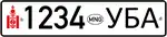 Номерные знаки транспортного средства Монголии состоят из четырёх цифр и трёх кириллических букв. Дизайн напоминает советский стандарт номерных знаков с 1980 по 1993 (ГОСТ 3207-77), у которых было четыре цифры и три буквы.