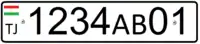 В 1996 году в Таджикистане были введены номерные знаки собственного образца, сделанные по образу и подобию номерных знаков Российской Федерации.