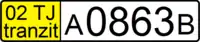 Идентичны старым российским транзитам, только слово «Tranzit» выполнено латиницей.