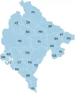 Черногорские номера в алфавитном порядке по административному делению Черногории: