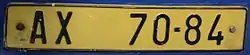 На малых прицепах (к легковым автомобилям) знак состоял из группы букв в середине между двумя группами цифр: 85-ALA-98. На грузовых прицепах у номеров был жёлтый цвет фона.