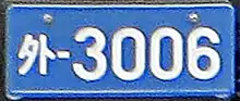 Транспортные средства, принадлежащие персоналу вооруженных сил США в Японии в соответствии с Соглашением о статусе сил (SOFA), имеют букву «Y» на белых номерах или букву «A» на жёлтых номерах, где обычно отображается символ хирагана. В более ранних версиях номерного знака SOFA отображались буквы «K», «M», «G», «H» и «E». Эти буквы указывали на то, что автомобиль был импортирован в Японию по программе SOFA и имел левосторонний руль. Сегодня автомобили с буквой «E» означают, что японский налог с продаж не был уплачен, и автомобиль не останется в Японии, когда военнослужащий уедет. С 1980-х годов военное командование не поощряло военнослужащих, назначенных в Японию, отправлять свои автомобили из США в страну, поэтому такое случается редко. Военнослужащие, выходящие на пенсию в Японии, используют хирагану «よ». Многие предпочитают приобретать подержанные отечественные автомобили у дилеров подержанных автомобилей за пределами базы, а также у других военнослужащих, покидающих Японию, на «лимонных участках» на базе[2].