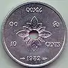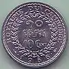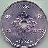 - камбоджийского образца (1953) — 10, 20, 50 центов. Легенда — на двух языках (французском и кхмерском), номинал на кхмерском указан в сенах[5];