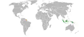 Индонезийско-суринамские отношения — двусторонние отношения особого характера[1] между обоими государствами, представляющими собой бывшие колонии Нидерландской империи, имеющими в силу этого прочные исторические связи. Во второй половине XIX — начале XX веков на территорию Суринама мигрировало большое количество яванцев с целью принятия участия в работе на плантациях. Посольство Индонезии располагается в Парамарибо и также аккредитовано при правительстве Кооперативной Республики Гайаны. Посольство же Суринама находится в Джакарте. Оба государства также принимают участие в деятельности Всемирной торговой организации и Форума сотрудничества Восточной Азии и Латинской Америки.