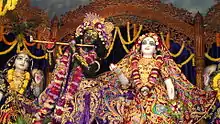 В Пуранах и индуистских эпосах «Махабхарате» и «Рамаяне» описывается много историй о том, как божества нисходят на Землю в человеческом облике, с целью восстановить дхарму в обществе и привести человечество к мокше (освобождению из круговорота рождения и смерти). Такие воплощения божеств называются «аватара». Самыми главными аватарами Вишну (которого большинство последователей вайшнавизма рассматривают как изначальную форму Бога) являются Кришна (главный герой «Махабхараты») и Рама (протагонист «Рамаяны»)[32]. В большинстве вайшнавских традиций индуизма Кришну считают наиболее полной аватарой Вишну, в которой проявились все трансцендентные качества личностного Абсолюта[32]. В таких течениях вайшнавизма, как гаудия-вайшнавизм, пуштимарга и нимбарка-сампрадая, являющихся частью кришнаизма, Кришне поклоняются как сваям-бхагавану — верховной форме Бога, источнику как всех аватар, так и самого́ Вишну[32].