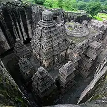 В пост-гуптский период изобразительный канон выходит за пределы Индостана. Он распространяется в ближайших регионах — Тибете, Непале и Индонезии. В это время выявляются черты, характерные для изобразительного искусства отдельных регионов субконтинента. Складываются своеобразные изобразительные комплексы. К примеру, в Эллоре близ Аурангабада сохранились три группы пещерных храмов — брахманистские, буддийские и джайнские. Самые интересные и выразительные из них — храмы шиваитской группы. Среди них выделяется непревзойдённый шедевр пещерного зодчества Храм Кайласа (Кайласанатха). Он украшен скульптурными изображениями индуистских божеств. На одном из многочисленных рельефов, украшающих стены, изображён четырёхрукий танцующий Шива. Он имеет три глаза, его левая нога согнута, тело изогнуто в позе «трибханга» (три изгиба). Кроме того, привлекает внимание изображение Шивы-Ардханари. Левая половина божества представлена в образе Парвати, правая — в образе Шивы. Это изображение является воплощением представления о единстве двух начал — мужского и женского[8].
