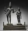 Андрогин Шива-Парвати (Ардханаришвара) на фоне шиваитского трезубца, Бронза. Династия Чола, Тамилнад, XI век.