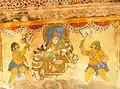 Интенсивно развивается в Средние века живопись на индуистские темы. Наследуя богатейшие традиции буддийских фресок Аджанты, художники создают настенные композиции в храмах Центральной и Южной Индии. В Бадами (Карнатака) сохранились фрагменты фрески, изображающей Шиву и Парвати, в храме Кайласанатха в Эллоре — фигуры Вишну и Лакшми, Шивы-Натараджи. Циклы фресок, посвящённых мифологии богов (в основном, Шивы) или житиям святых, создаются в первой половине II тысячелетия в период империй Чолов и Виджаянагара. К ним относятся фрески храмов Танджавура, Канчипурама, Тируварура и Чидамбарама[10].