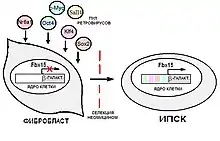 - модификация соматической клетки, индуцирующая её превращение в стволовую клетку, с помощью: генетического материала, кодирующего белковые репрограммирующие факторы[9][10][11]; рекомбинантных белков[12][13]; микроРНК[14][15][16][17][18], синтетической самореплицирующейся полицистронной РНК[3] и низкомолекулярных биологически активных веществ[4][19][20][21][22][23].