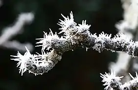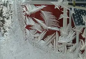 Морозный узор на оконных стёклах возникает из-за конденсации водяного пара на охлажденном ниже 0 градусов стекле[2].