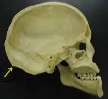 Срез черепа, инион указан стрелкой