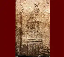 ![]() Серех (Хорово имя) Иниотефа I — «Хор Сехеру-тауи», начертанное более поздним фараоном Ментухотепом II в храме Монту в Эль-Тоде. Сейчас хранится в Египетском музее в Каире. | |