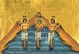 Тогда стояла жестокая зима; реки скреплены были морозом так, что по льду ходили не только люди, но и кони и возки. Князь приказал поставить в лёд большие брёвна, как целые деревья, и привязать к ним святых. Итак, когда вода взволновалась, и лёд постепенно умножался, так что дошёл до шеи святых, они, измученные страшною стужею, предали Господу блаженные свои души.