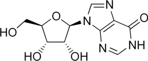 Инози́н (англ. inosine) — это нуклеозид, состоящий из гипоксантина, связанного с остатком рибозы (рибофуранозы) посредством β-N9-гликозидной связи[1]. Монофосфат инозина окисляется ферментом инозинмонофосфатдегидрогеназой, образуя монофосфат ксантина, ключевой предшественник в метаболизме пуринов[1]. Инозин является компонентом тРНК и необходим для трансляции в случае неоднозначных пар оснований.