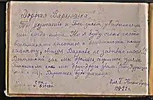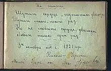 Запись Оли Бесоновой в альбоме воспитанницы В. К. Чуренковой: