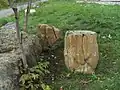 Окаменевшие пни деревьев в сквере у ИМин УрО РАН и Естественно-научного музея Ильменского заповедника