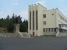 Вид с Ильменского озера на ИМин УрО РАН и Естественно-научный музей Ильменского заповедника