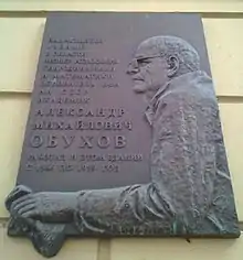 Мемориальная доска Александру Обухову на здании института