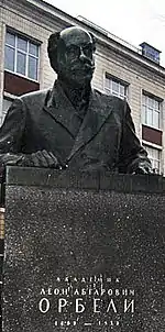 Перед лицевым фасадом находится памятник физиологу, профессору и вице-президенту Академии наук СССР Леону Абгаровичу Орбели.[2]