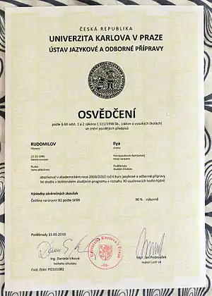 | Институт языковой и профессиональной подготовки Карлова университета в Праге (ИЯПП КУ) | |