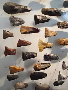 Возрастом 400 тыс. л. н. датируется находка, которую можно интерпретировать как фрагмент сложного составного орудия — деревянная рукоятка с вырезом, в который, возможно, вставлялось каменное лезвие[22].