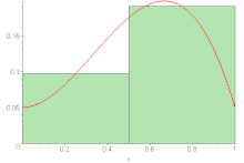 - Интеграл Римана от частично заданных функций. Иногда имеет смысл определить интеграл Римана для функций, частично заданных на отрезке . Он определяется, если при любом достроении функции до полностью заданной её интеграл равен одному и тому же значению. В этом случае это значение считается интегралом Римана от частично заданной функции. К примеру: можно рассматривать функции, не определённые в конечном числе точек. Если при этом во всех остальных точках они непрерывны почти всюду, то любое достроение до полностью заданной функции интегрируемо, и их значения равны, так как значение интеграла не зависит от значения на множестве меры нуль. Для таких функций даже существует обобщение формулы Ньютона-Лейбница.[55] Однако уже даже для счётного множества это выполняется не всегда. Возьмём функцию , заданную только на множестве иррациональных чисел. Её можно разными путями доопределить до и до функции Дирихле. В одном случая она интегрируема, в другом нет. С другой стороны, если рассмотреть , неопределённый на множестве Кантора, то любое достроение такой функции будет интегрируемо.