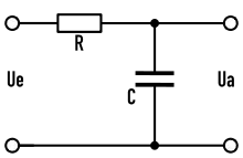 В простейшем случай представляет собой RC-фильтр нижних частот — соединение конденсатора и резистора как показано на рисунке. Дифференциальное уравнение, описывающее эту цепь: