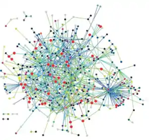 Важной задачей теории сложных сетей является поиск сообществ в сети. Если в социальной сети «сообщества» (англ. community) являются сообществами людей, то в контексте интерактомов «сообщества» — это группы взаимодействующих белков или геном, которые могут составлять метаболический путь или регуляционную подсистему. Это применение является ключевым для интерактомики как для части предсказательной медицины[75], потому что многие болезни вызываются значительными нарушениями функционирования клеток, которые возможно обнаружить при помощи определения той части интерактома, которая начинает работать неправильно.