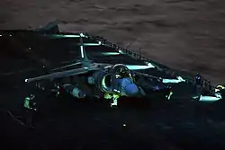 - 4 × AV-8B Harrier II штурмовика вертикального взлёта и посадки, базирующиеся на борту USS «Kearsarge»