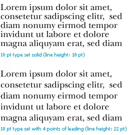 Также в ручном и линотипном наборе невозможен был «отрицательный интерлиньяж» (например, набор 10 pt/9 pt, то есть набор текста литерами высотой в 10 пунктов при расстоянии между базовыми линиями соседних строк в 9 пунктов).