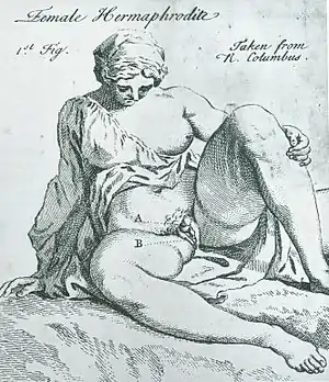 Термин «гермафродит» обозначает человека, который имеет как мужские, так и женские репродуктивные органы. Он берёт начало в древнегреческой мифологии — мифах о Гермафродите, двуполом сыне богов Гермеса и Афродиты[32]. В современное время интерсекс-люди чаще расценивают термин «гермафродит» уничижительным, однако некоторые активисты занимаются его реклеймингом — использованием в качестве протеста с попыткой придать слову позитивное значение[32].