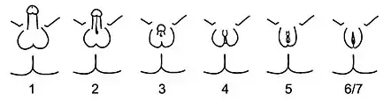 - Феминизирующие и маскулинизирующие операции: хирургические операции зависят от диагноза, и часто возникает вопрос, следует ли вообще выполнять операцию. Как правило, операция проводится вскоре после рождения. Защитники практики утверждают, что людям необходимо четко идентифицировать себя как мужчин или женщин, чтобы они нормально жили в обществе. Часто говорят о психосоциальных причинах[72]. Это критикуется многими правозащитными организациями и активистами. В отличие от других эстетических хирургических процедур, выполняемых на грудных детях, таких как пластические операции при расщепленном нёбе, операции на половых органах могут привести к негативным последствиям в сексуальной жизни человека в более старшем возрасте или к чувству неполноценности[73].