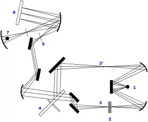 Основным элементом инфракрасного спектрометра с преобразованием Фурье является интерферометр Майкельсона, который работает следующим образом. Луч когерентного света падает на светоделитель, в результате чего получаются два луча примерно одинаковой интенсивности. Далее каждый из этих лучей отражается от своего зеркала и возвращается на светоделитель, где лучи объединяются, создают интерференцию и попадают на детектор. Одно из зеркал в интерферометре является подвижным: его положение постоянно изменяется, за счёт чего возникает меняющаяся разность хода. В зависимости от величины разности хода лучи соединяются в фазе или противофазе, что приводит к положительной или отрицательной интерференции[2].