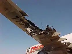 | Причина | Воздушная атака, повреждения левого крыла, отказ гидравлики |