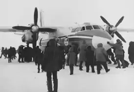 Новость о посадке советского авиалайнера быстро облетела городок Гамбелл, в котором на тот момент проживали 736 человек. Местные жители предоставили экипажу и пассажирам обогреватели и продукты питания. Также вовсю происходил обмен сувенирами, включая часы, монеты, перчатки. О событии жители сообщили правительству в Номе. Находящееся в Вашингтоне советское посольство связалось с Госдепартаментом и Министерством обороны, запросив у них предоставить топливо для застрявшего Ан-24. Той же ночью Аляскинское воздушное командование (en:Alaskan Air Command, AAC) получило указание о необходимом типе авиакеросина (JP-1) и как связаться с командой[2].