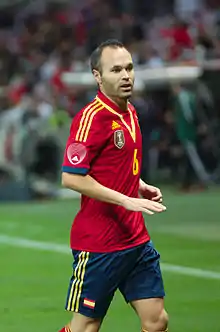 Андрéс Инье́ста Луха́н (исп. Andrés Iniesta Luján, испанское произношение: [anˈdɾes iˈnjesta luˈxan]; род. 11 мая 1984 года, Фуэнтеальбилья, Альбасете, Испания)[5] — испанский футболист, полузащитник и капитан японского клуба «Виссел Кобе»[6][7]. Бывший вице-капитан национальной сборной Испании. Один из самых выдающихся игроков в истории мирового футбола[8][9][10][11][12]. Самый титулованный испанский игрок в истории (37 титулов).